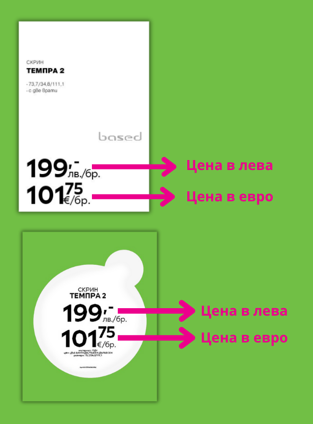 В магазините ни и онлайн вече ще виждаш всички цени едновременно в евро и в левове. Така можеш спокойно да се ориентираш и да пазаруваш уверено, без притеснение.
