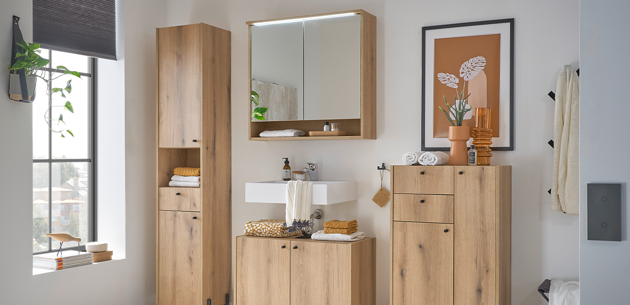 За по-естетичен вид може да изберете красиви и функционални модели на аксесоари и осветление. Вграденото осветление или светодиодни ленти под рафтовете и огледалата добавят модерно усещане и увеличават видимостта.