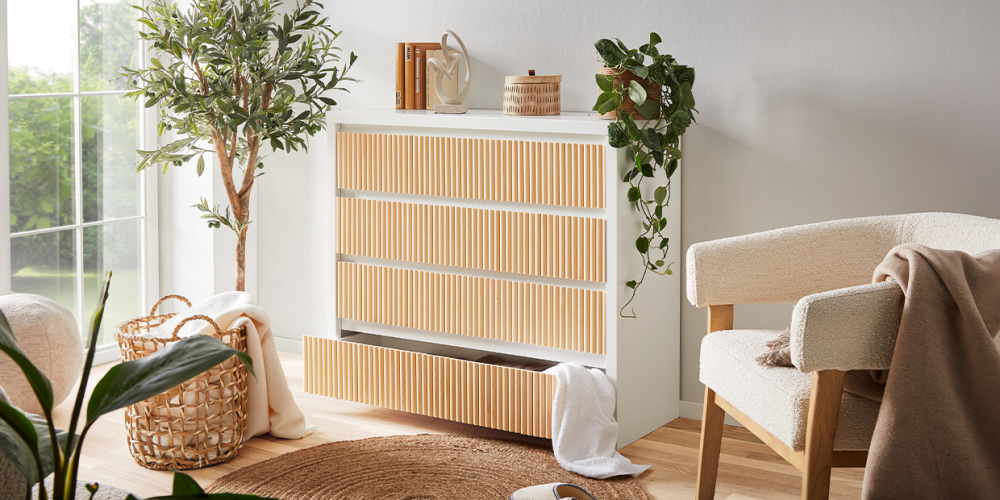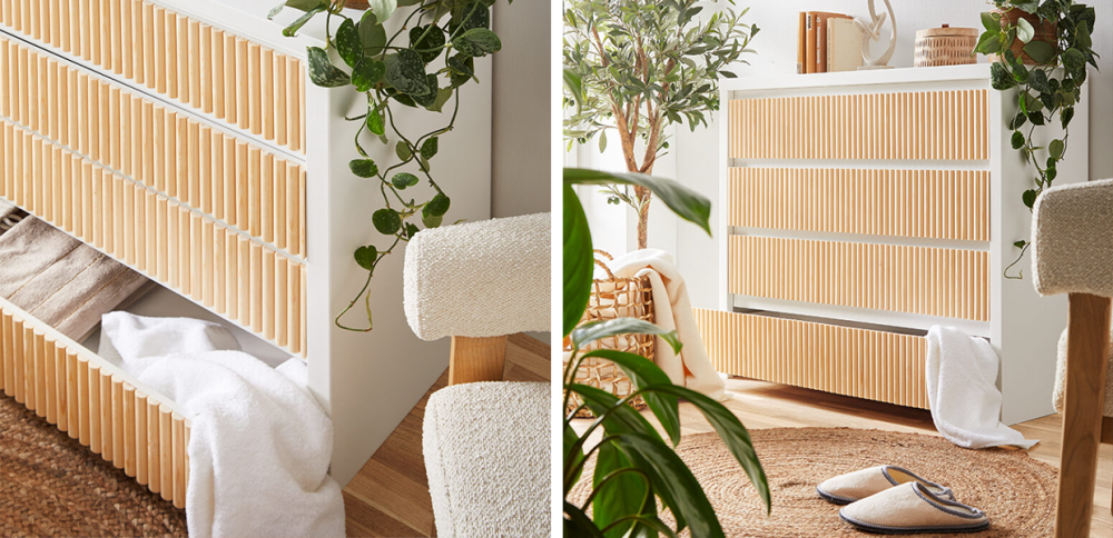 По принцип можеш да добавиш акцент с дървени пръчици на всеки скрин, но при скринове с врати трябва да се уверите, че сте поставили дървените елементи правилно (следователно да са по къси от вратата), за да могат вратите да се отварят напълно.