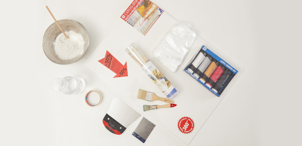 Ще започнем със структурата на платното. Взехме си обикновен гипс от железарията. Работи също толкова добре, колкото специална текстурираща паста, но е значително по-евтин и по-леснодостъпен.