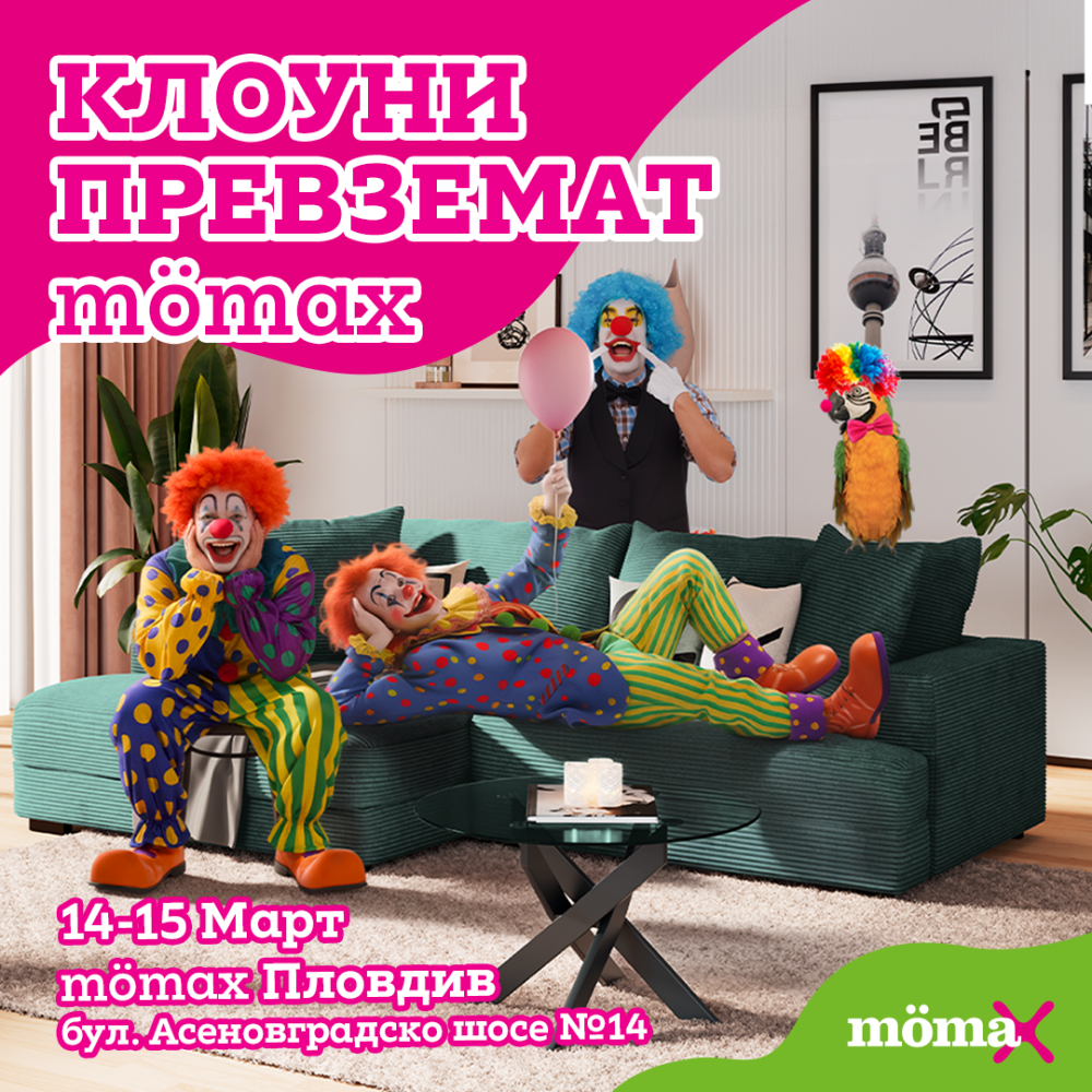 Ела в mömax Пловдив на 14ти и 15ти март на бул. Асеновградско шосе 14 и се забавлявай заедно с нас и клоуните на mömax от 11ч. до 17 ч. Очакваме те!
