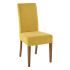 Трапезен стол с жълта тапицерия на седалката и облегалката и тъмен дървесен декор на краката с размери Ш:56/Д:44/В:96 см.