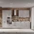 Класическа линейна кухня състояща се от долни, горни и високи кухненски шкафове с размери Ш:360/Д:60/В:240 см. Компактна и добре организирана, предоставя удобно място за съхранение на хранителни продукти и прибори, с включени следните електроуреди: фурна, микровълнова, стъклокерамичен котлон, съдомиялна и хладилник с фризер. Кухня е в декор сив цвят (отлят бетон) с монтирани на вратите сребристи метални дръжки. Горните шкафове са със вертикално отваряне, с монтирани вътрешни рафтове за удобното съхранение на подправки и хранителни продукти в кутии, буркани и др. Долните шкафове разполагат с три практични чекмеджета за кухненски прибори и други малки предмети, които държим в кухнята. Високите шкафове освен с отделения за съхранение на хранителни продукти и предмети са с монтирана фурна и микровълнова.