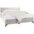 - Леглото е тапицирано с устойчив текстил с мека текстура в мек кафяв нюанс, който внася усещане за уют и спокойствие.