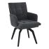 Повърхността, от която е изработен, е кадифе, което се хармонира деликатно при допир. Тъмните метални крачета са прахово боядисани, осигуряващи товароносимост на въртящия се стол 140 кг. Сърцевината е съставена от полиуретанова пяна, което ще ви предостави комфортна и обширна седалка, притежаваща функция въртене в радиус от 180 градуса.