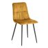 Луксозен трапезен стол с размери Ш:45/Д:55/В:89 см. Притежава модерна визия и стил в комбинация с удобна тапицирана седалка и облегалка с кадифена дамаска с пълнеж от пяна. Висококачествената тапицерия на стола е приятна на допир и усещане, като потребителите имат възможност за избор на цвят между сив, жълт и черен. Четирите черни крака на модела са здраво прикрепени към креслото. Добър избор за обзавеждането на трапезарията или дневната, като поставен до трапезната маса часовете ще минават неусетно в компанията на приятели и семейството.